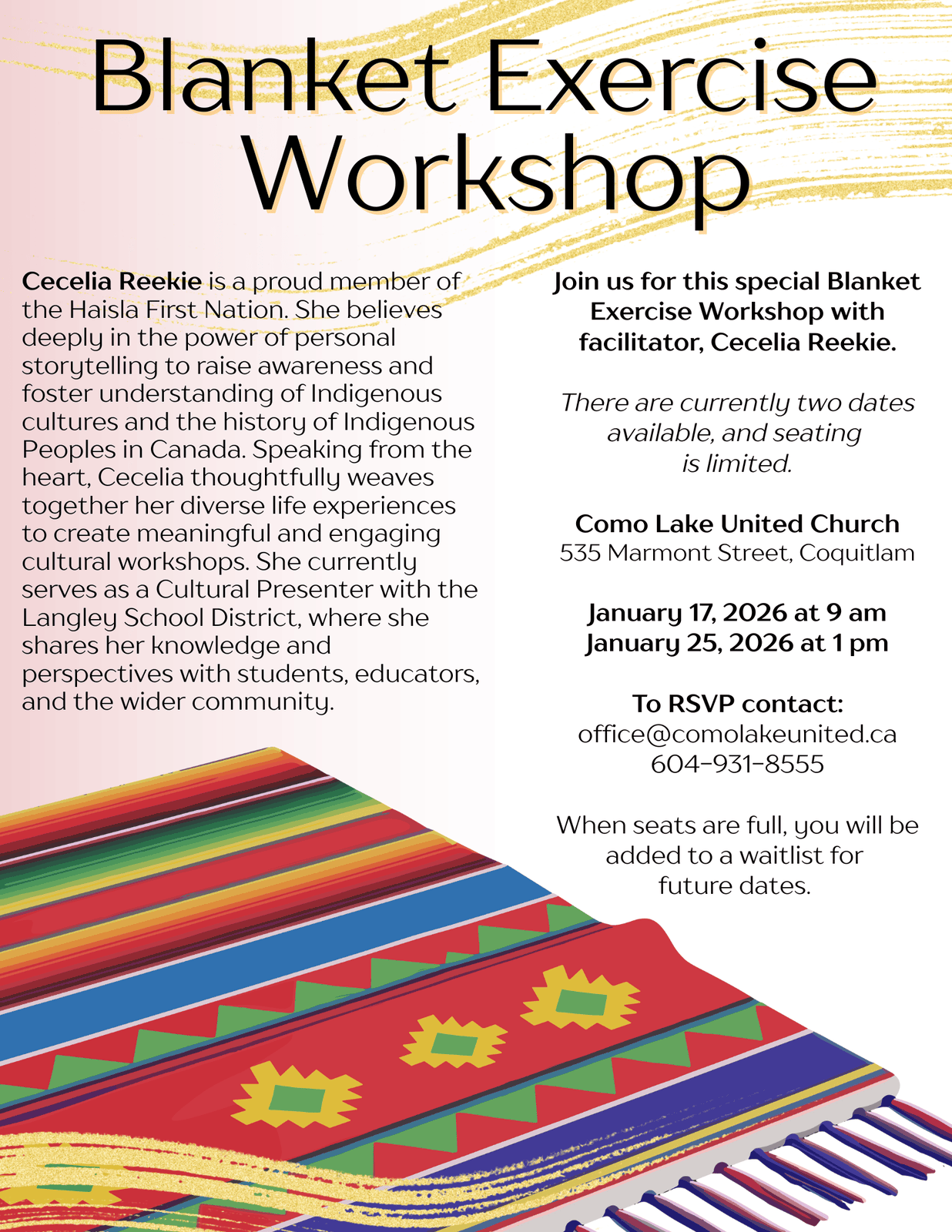 Check back often for new events and programs. If you would like to host a program us, please email us at office@comolakeunited.ca.